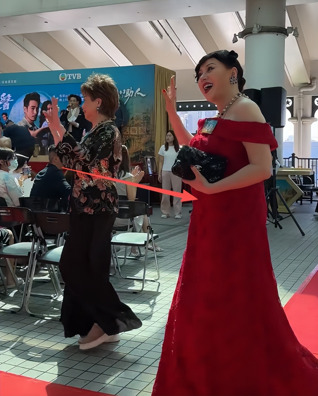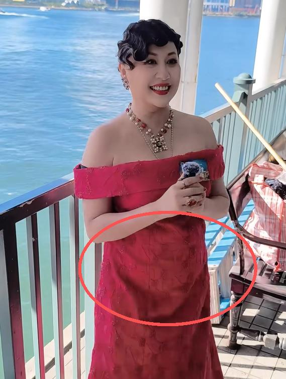 從側面來看,江欣燕這個小肚子極為突出,就好像懷孕了一樣,如果不是禮服遮擋,恐怕這胖乎乎的肚子,只會更加明顯。