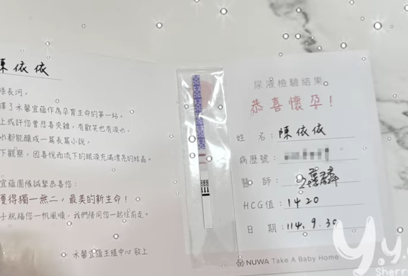 經過一番努力,終於在今年9月下旬傳來好消息,當接獲確認懷孕的檢驗報告時,夫妻倆忍不住喜極而泣。不過懷孕初期曾出現出血的狀況,也讓兩人一度感到十分擔憂。
