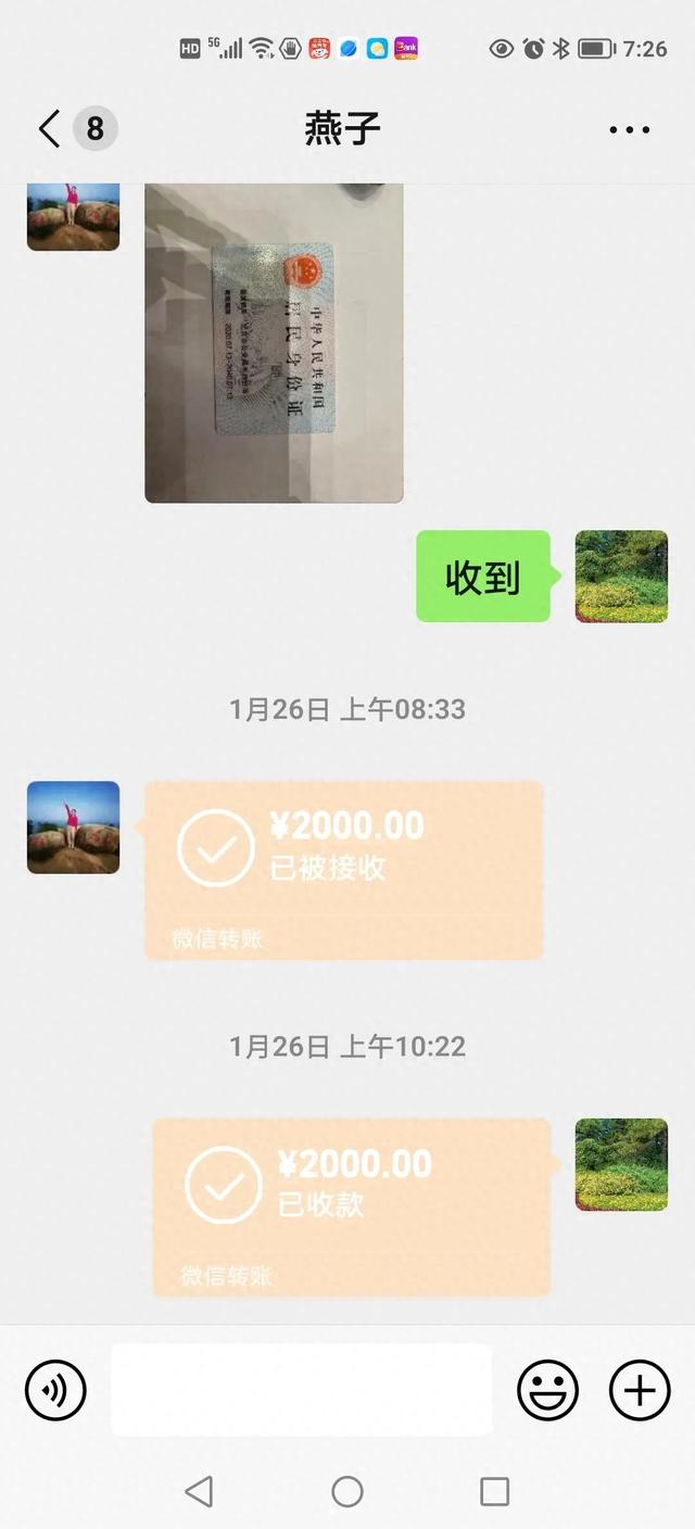 我點開手機,找到媳婦轉錢的消息,高興的收下2000塊錢(約台幣9千元)。