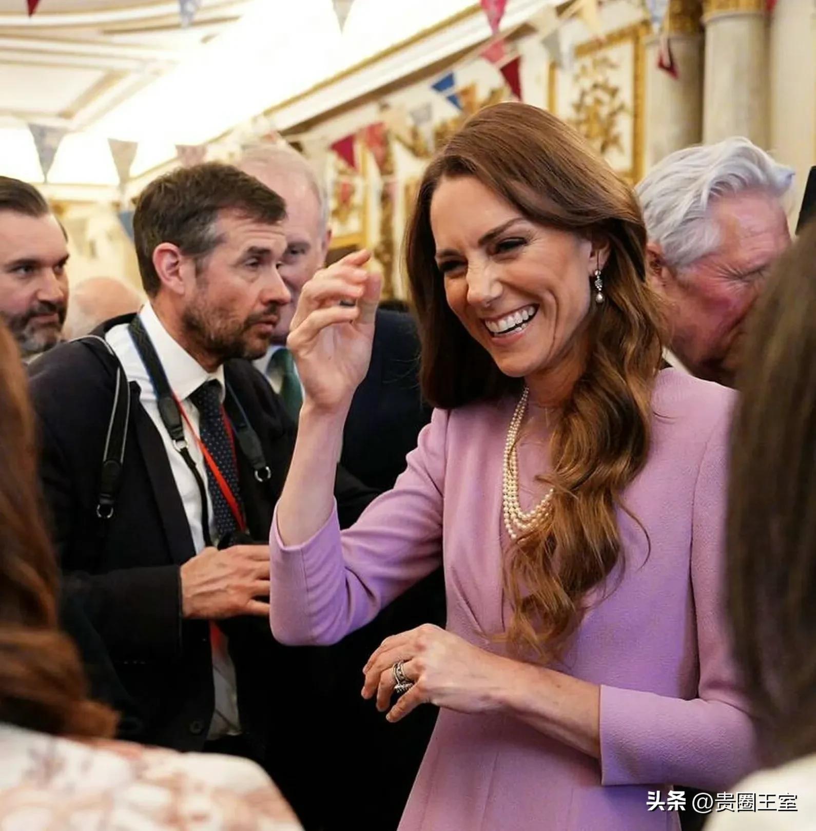 今天凱特王妃一襲淡粉長裙驚艷亮相,頸間三層珍珠項鏈搭配同系列耳環,盡顯優雅。珍珠向來是已故伊麗莎白二世最鍾愛的飾品,其經典韻味深深影響了卡米拉王后與凱特王妃,成為王室女性代代相傳的審美傳承。