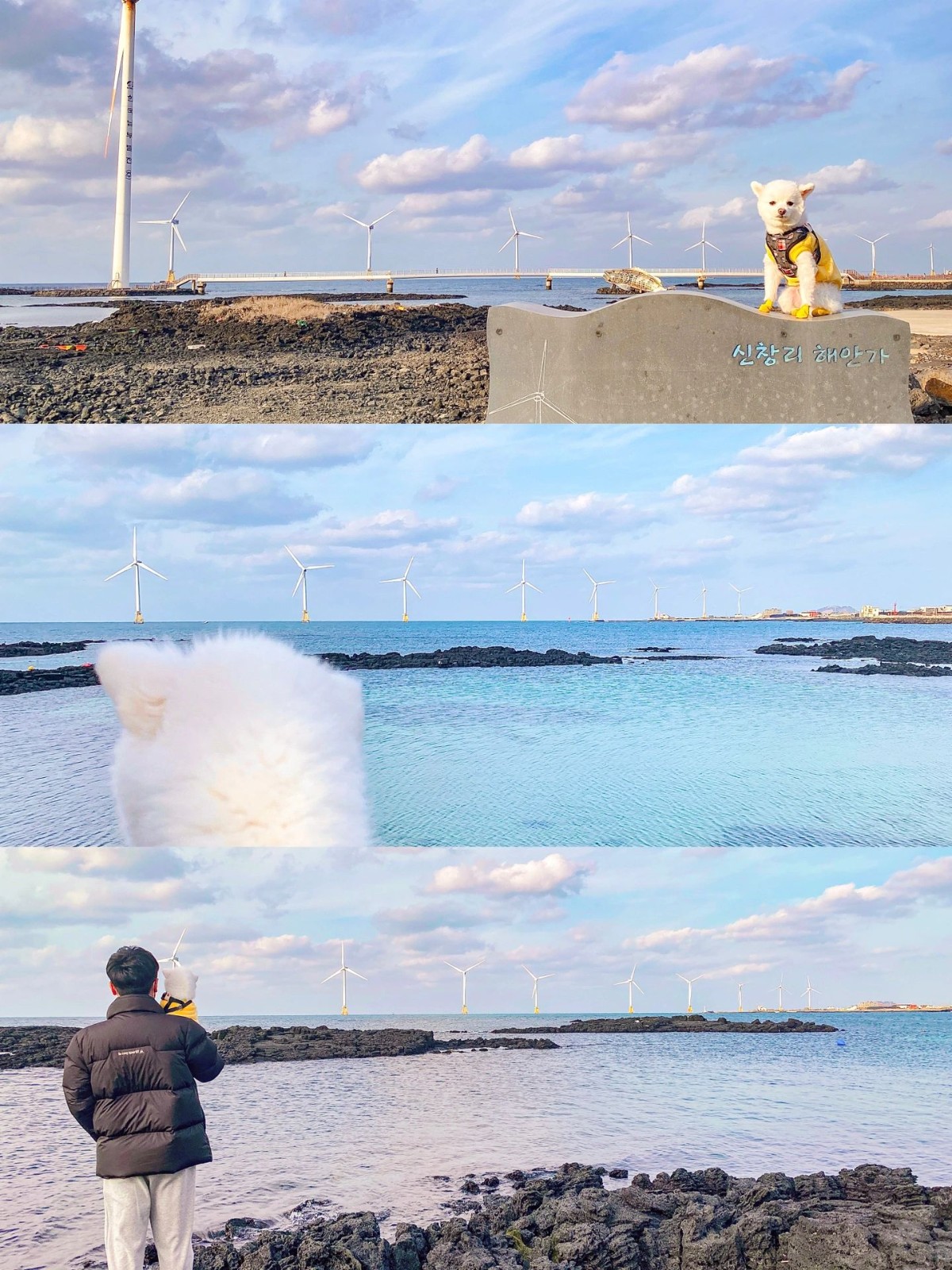 隨著漲潮和退潮有不同的景色外,很多遊客都會漫步在這個跨海人行橋上,可以抵達巨大風車的下方拍美照,走在路上還是有種在海上飄的感覺啊~