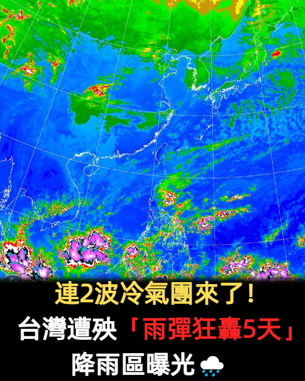 連2波冷氣團來了!台灣遭殃「雨彈狂轟5天」降雨區曝光
