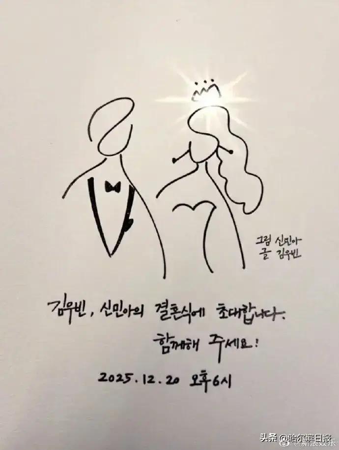 新人的心意更體現在細節裡:請柬由申敏兒手繪簡筆畫、金宇彬親筆題字,伴手禮是能栽種的香草土壤,寓意「共同滋養生活」,高端品牌定製的禮品卡片上,手寫著對賓客的真摯謝意。交換誓言環節僅90秒,金宇彬改了三版的誓言最終簡化為「以後一起收快遞」,樸實的話語道盡老夫老妻的默契與篤定。更令人動容的是,兩人婚前已向燒傷基金會、醫院等機構捐贈3億韓元,婚禮剩餘鮮花也送往養老院,將喜事化作善意傳遞。