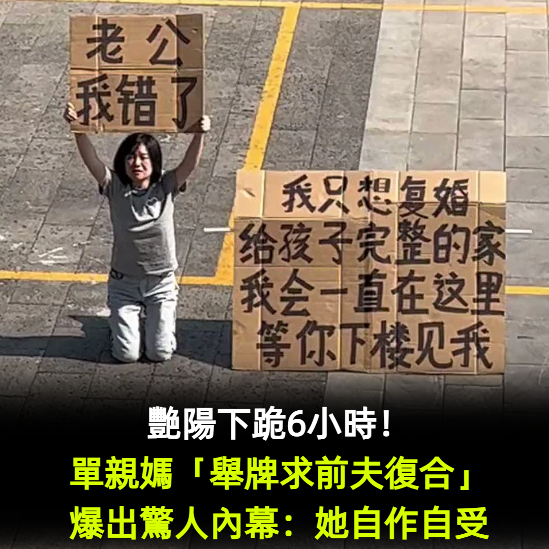 艷陽下跪6小時!單親媽「舉牌求前夫復合」畫面超催淚 沒想到「卻爆出驚人內幕」:她自作自受