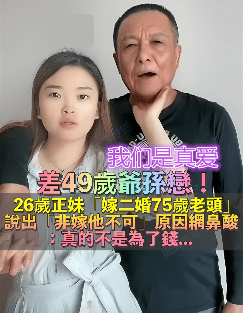 26歲女子嫁給75歲老漢,在網上秀恩愛,女子「偏愛年紀大的男人,這樣更有安全感,雖然母親不同意,可是她也無可奈何,因為我從小沒有得到父愛」