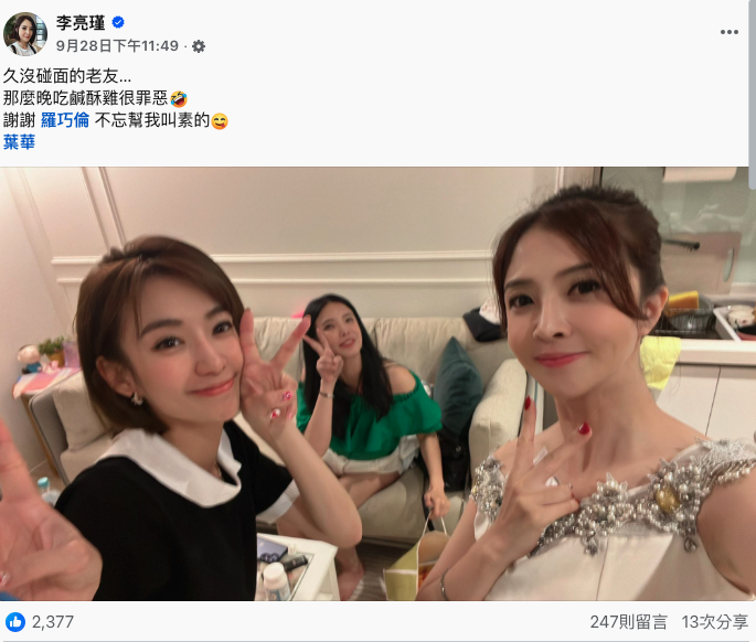 眾星救災花蓮!44歲李亮瑾「連假揪姐妹吃好料」卻被罵 她「正面回應酸民」網讚:層次完全不同