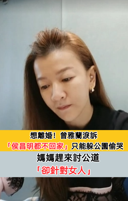 曾答應離婚!曾雅蘭淚訴「侯昌明都不回家」只能躲公園偷哭 媽媽趕來討公道「反而念了她一頓」