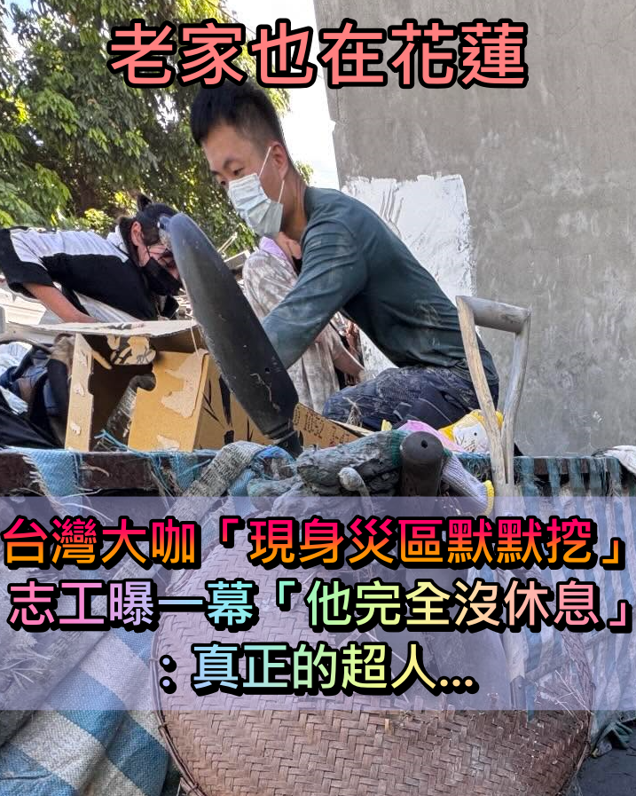 低調前進花蓮救災!台灣大咖「滿身泥土默默一直挖」 當地志工曝「他完全沒休息」:真正的超人