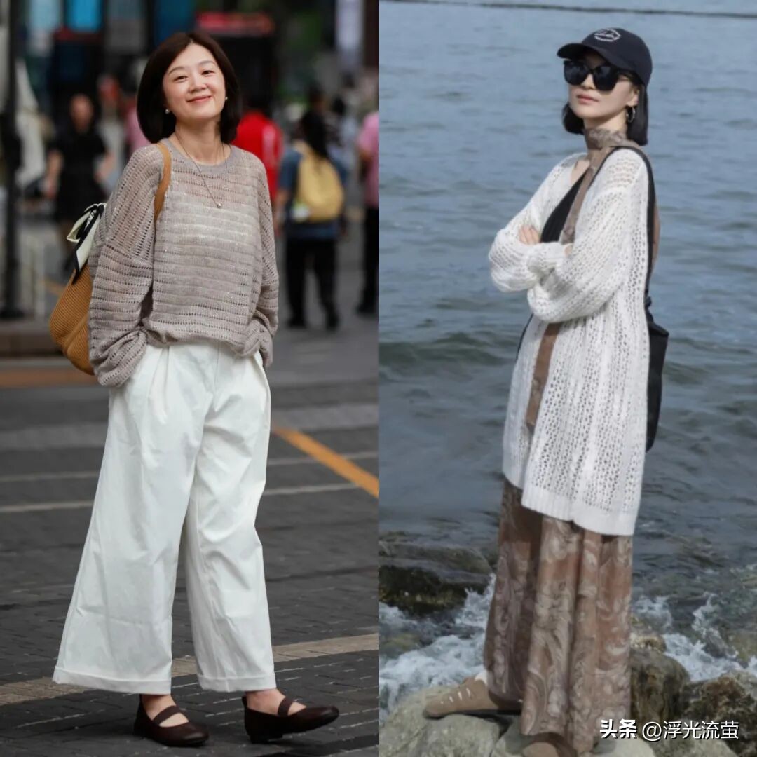 挑選罩衫的時候,一定要選像針織或冰絲這類透氣、質感好的款式。