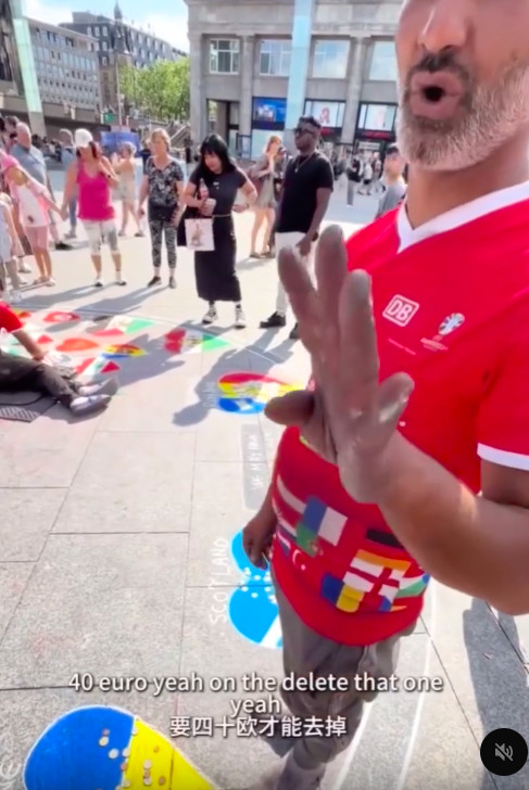 根據《三立新聞網》、《自由時報》報導,相關影片被網友上傳至抖音後引發討論。畫面中可見,這名中國遊客發現現場沒有五星旗後相當不悅,當場向畫家提出要求,希望能立即補畫上去。然而畫家表示,若要加畫國旗需要支付40歐元(折合新台幣約1500元)。中國遊客聽到價格後覺得太貴,詢問能否畫小一點就好,畫家卻回應「尺寸太小無法展現重要性,這樣反而不夠尊重」。