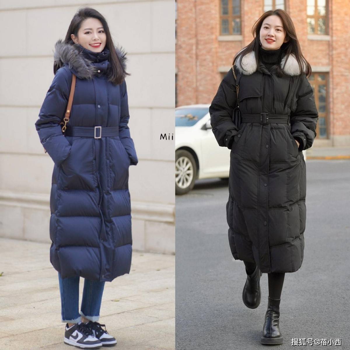 如果覺得常規的黑色羽絨服太單調,可以選帶大毛領的寬鬆款,毛領的蓬鬆感能提升貴氣感,又能弱化羽絨服的厚重。再加上腰部帶抽繩設計,繫上後能勾勒腰線,避免臃腫,誰穿誰顯瘦。如果不想穿的太拖沓,下半身可以選啞光黑色打底襪,修飾雙腿還很保暖,再搭配一雙帶金屬扣的樂福鞋,鞋子的復古感中和了羽絨服的休閒感,整體風格溫柔又顯貴,時髦度特別高。