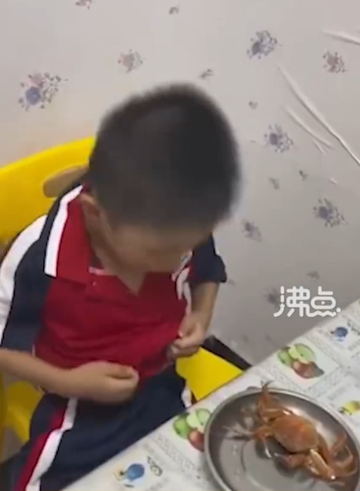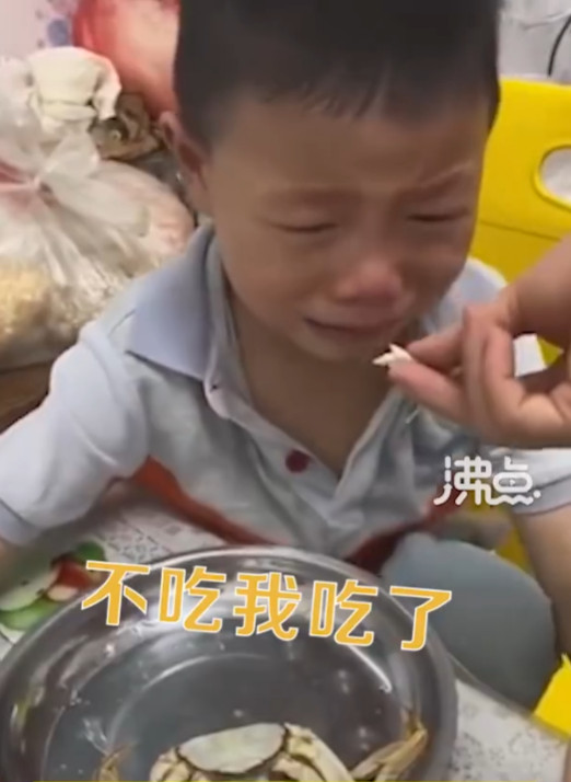 影片中可見,爸爸對著孩子說:「弟弟的這個(螃蟹)也煮熟了」,聽到噩耗的小兄弟當場崩潰痛哭,媽媽不但沒有安慰,反而將蟹肉塞到孩子嘴邊威脅:「吃不吃?不吃我吃了」,爸爸更追問小兒子螃蟹味道如何,孩子只能邊哭邊回答:「香的味道」。兩個孩子哭得聲嘶力竭,大顆淚珠不斷滑落臉龐,畫面令人不忍。