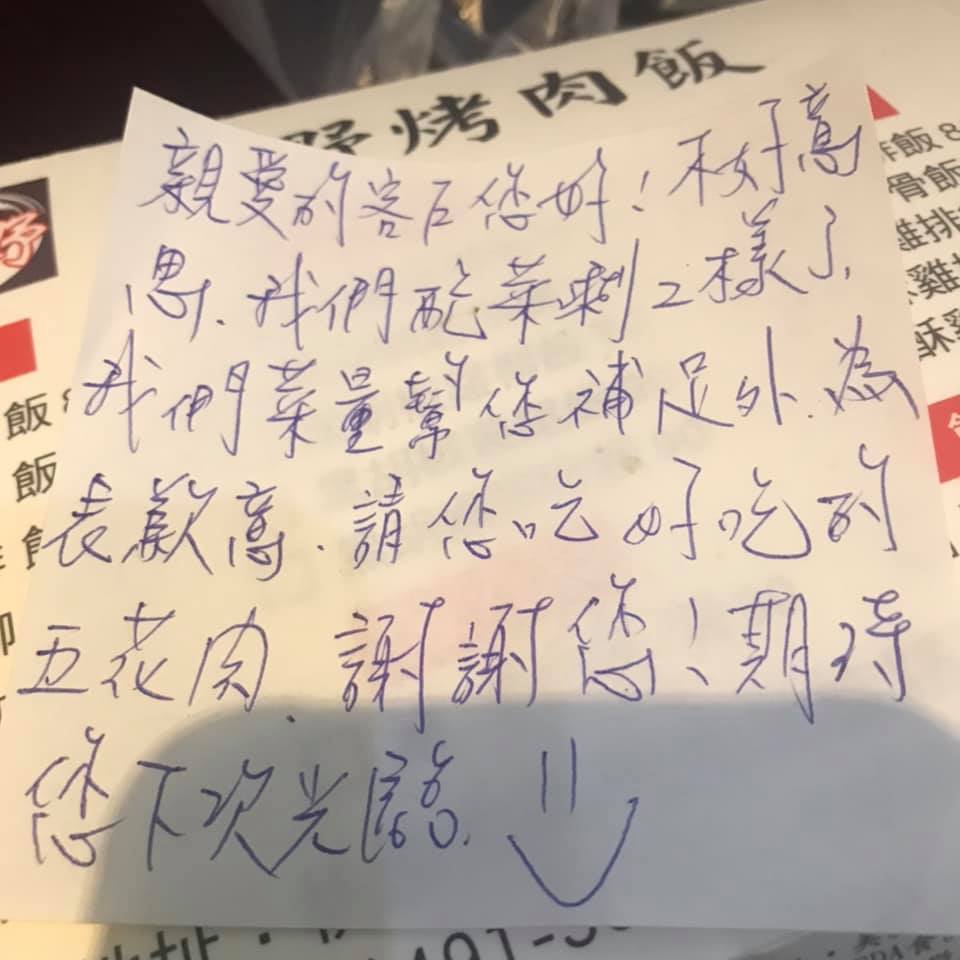 配菜不夠!店家「親手寫紙條誠意道歉」 加碼送一盒補償「她一打開超驚喜」:怎麼那麼佛心 Alice 2023-10-17 檢舉 原PO也強調,發文的目的並不是在替店家打廣告,「只是覺得太扯,少菜補肉。很可惜上班在那裡,偏偏不住那裡,不然一定每天訂給女兒吃!」而其他網友也紛紛表示「我的新台幣要找他們店家算帳 」、「怎麼會有這種欠人教訓的店家呢?看來必須揪眾用新台幣好好的教訓教訓了」、「超讚的,肉肉吃到飽」 。 (圖片來源:爆怨2公社)這店家真的太讚了吧!!!希望店家生意興隆阿~來源:爆怨2公社 Advertisements 回首頁 2/2 Advertisements 猜你會喜歡 圖書館遇到理想型男孩!她傳紙條「可以認識一下嗎」 一打開「看到男生可愛回覆」後續卻傻了 威脅要把愛車牽走!店家「不滿機車佔用騎樓」貼告示警告 騎士氣不過「超嗆法律式回擊」掀議論 鄰居貼紙條嗆聲「看到狗就修理」:別說我沒警告 不久後飼主「超有誠意回應」對方不敢吭聲了 編輯精選推薦 More + 館長臥推失誤遭「槓鈴重擊壓胸」身亡!監視器曝光「生前畫面」令人震驚 台灣最新詐騙!1通電話「8300萬沒了」接到快掛斷 太心碎!知名大咖驚爆「生下雙胞胎兒」猝逝 丈夫發聲「20萬粉絲崩潰」:不敢相信 男子降價100萬賣房!鄰居們氣炸找上門「你會影響我們房價」 他1句話「讓大家摸摸鼻子走人」 這種「毒床單」已流入市面太可怕!家裡有的趕緊扔「越鮮豔越危險」 衣服從來不重複!巧手媽「天天替女兒換上蘿莉裝」超華麗 正面一轉「精緻五官+韓妞時裝」Q翻天❤️ 快訊/桃園驚傳「停課92班」1病毒爆發 疾管署曝:「已9例死亡」 「冬天吃一果」中藥不用喝!2種吃法「健脾安神」補氣血 應季而食:驅寒潤肺 別只會加高麗菜!冬天吃鍋「一便宜蔬菜」抗癌又護肝 便宜又滋補「營養師認證大推」:平民人蔘 男子突發腦出血走了!醫生怒斥:「吃降壓藥時候,沒有注意這3點!」 6歲童長膿癬永久禿頭!醫檢查驚「兇手竟是牠」小孩易感染 晚年剩下一個人!65歲阿姨決定「不跟兒女住、不住養老院」 把房子賣了「這樣度過餘生」 親自抱下女兒遺體!郭主義喪女5年「鼓起勇氣做一事」 潰堤曝「心碎畫面」:永遠做妳驕傲的老爸 85歲失智父身亡!林葉亭突宣布「皈依佛門」 遇大師「開示一番話」忍不住淚崩 王力宏驚喜宣布「再度當爸爸」當場激動落淚! 準媽媽「讓2萬隻蜜蜂爬滿孕肚」拍獨特孕婦寫真!預產期前6天「寶寶卻不動了」:只被螫3次... 花藝界的小仙女!夢幻「人魚姬玫瑰花束」粉嫩漸層美翻 另一款「空靈鬱金香款式」情人節超必備❤️ 27歲男每天喝7、8瓶!走路掰咖去檢查「骨頭全壞死了」 不是摟雷!她好奇問「酪梨的台語怎麼說?」 內行人透露正解「唸法和日文有關係」 早晚喝一杯!8旬嬤罹癌半年「腫瘤竟離奇消失」 醫力薦「加入這蔬菜」:抗癌效果再升級 全遣送中國!台灣873名詐騙犯慘了「外交部出面回應」 高三生久咳不愈!去醫院照X光竟是「這器官長在胸腔」 快訊/爆6.7強震!氣象專家警告「第一波海嘯抵達了」 快訊/知名主持人「驚傳陳屍家中」死因曝光 前一晚才正常主持 不菸不酒又強壯!年輕男肩膀痛「推拿復健都沒用」 一照是「10公分腫瘤已癌末」醫:僅一招可保命