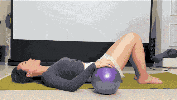 加強核心運動:瑜珈小球充氣別太滿。沒有小球的,也可以用抱枕替代。每次抬腿時候先下意識穩定住核心,讓身體不要左右亂晃或塌腰。感覺肚臍眼周圍深層肌肉發力,緩慢把大腿帶起來。另一條腿踩實地面,大腿前側和後側都會感覺到髮力。保持勻速自然呼吸,不要為了穩定核心而憋氣。