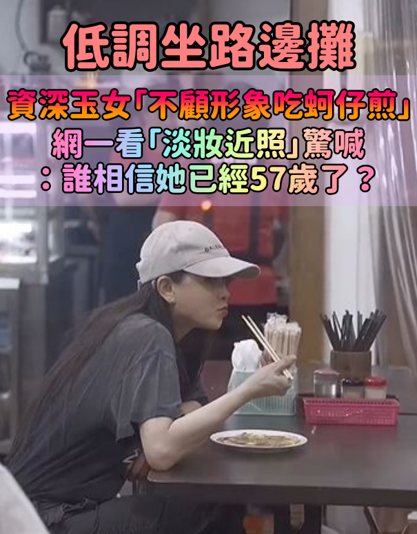 低調坐路邊攤!資深玉女不顧形象「大啖甜不辣、蚵仔煎」 「凍齡美貌曝光」網喊:誰會信她57歲了