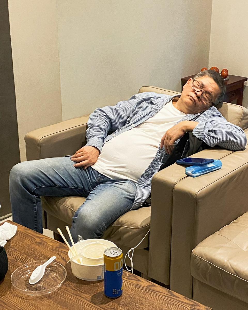 兒子皮皮則在一旁陪伴,不捨透露爸爸並沒有得到新冠也不是流感,「醫生說是呼吸道感染,很嚴重的感冒,所以回台北就趕快到醫院打點滴」。他坦言真的是不幸中的大幸,由於爸爸現在身體虛弱無力,預計停工2、3天靜養。