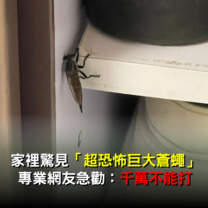 被照了放大燈?家裡驚見「超巨大蒼蠅」停在櫥櫃上 他嚇傻問「到底是什麼蟲」專業網友解惑了