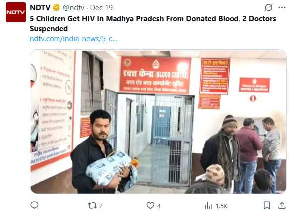 據資料統計,該國約有250萬人帶有HIV病毒,每年新增的感染人數約66400人。儘管愛滋病已經不是絕症,但仍須終身接受治療。印度有超過160萬人依靠抗愛滋病毒治療中心提供的長期藥物支援。地方官員指出,部分病童在不同醫療機構之間接受輸血,讓追蹤工作難度大增。一名三歲女童的父母雙方HIV檢測皆呈陽性,但其他案例的家長都是陰性,排除了母嬰垂直傳染的可能性。事件爆發之後,家屬面對的不只是健康危機,更有來自社會的排斥與汙名。在賈坎德,一名七歲確診男童的家庭遭到房東驅趕,只能搬回缺乏醫療資源的鄉下村落。