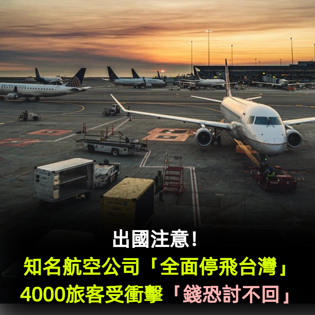 出國注意!知名航空公司「全面停飛台灣」 4000旅客受衝擊「錢恐討不回」