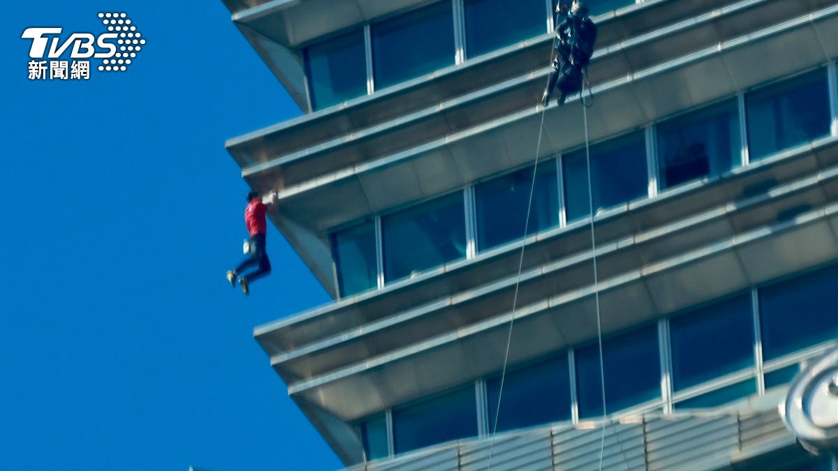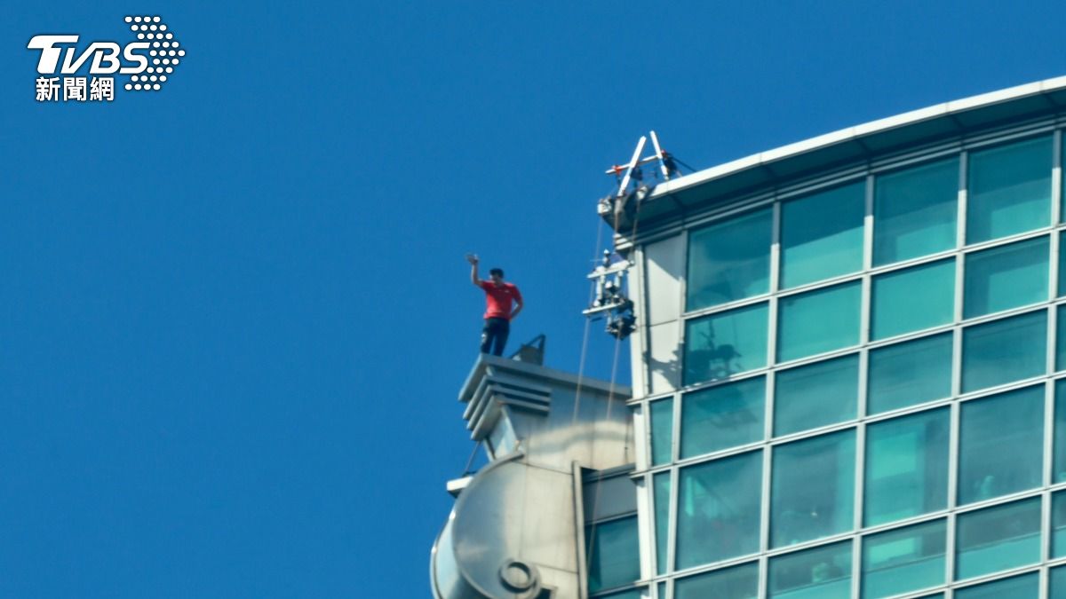 上午9點12分,霍諾德正式啟動挑戰,他腰間僅攜帶止滑粉,沒有任何繩索保護,便開始向上攀爬。過程中他神情專注,每一個動作都謹慎小心,但仍不忘對著一樓民眾微笑揮手。大樓內的民眾也興奮地拿出手機,透過窗戶與他打招呼拍照。攀爬至第四節點時,他向主持人分享:「這裡的景色太美好了,感覺非常超現實。」不過他也坦言,越往上風勢越強,特別是轉角處更為明顯。