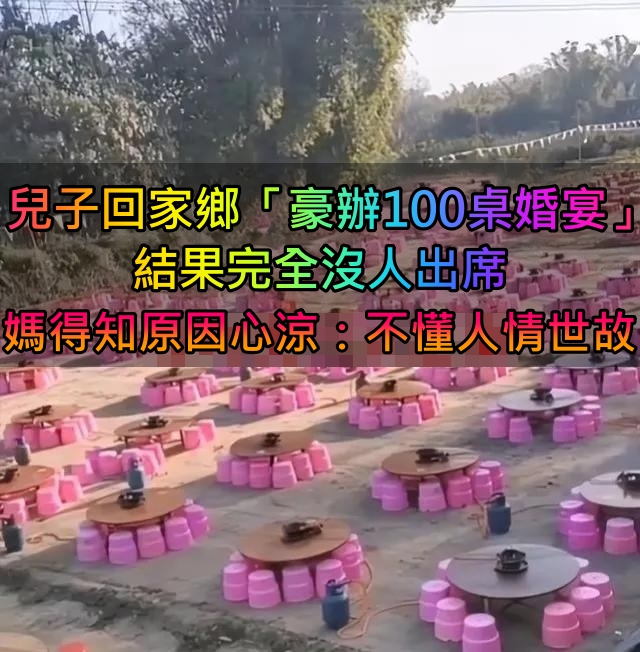 兒子回家鄉「豪辦100桌婚宴」結果無一人出席 媽媽心涼:太不懂人情世故