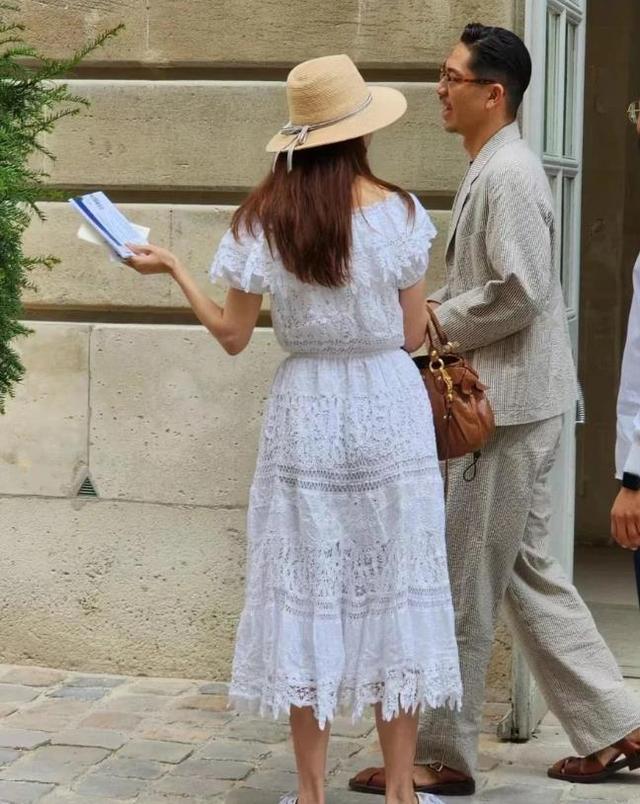 當時林志玲穿著白色的碎花長裙,老公AKIRA則是穿著休閒西服,夫妻一起互動特別有愛,很恩愛的一對。