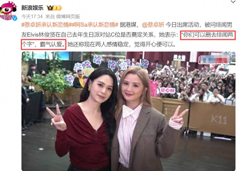 誰知,阿Sa立馬回答說,「你們可以刪掉緋聞兩個字」,霸氣認愛猛男。