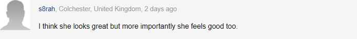 「我覺得她現在看起來棒極了!但更重要的是她自我感覺也很好~」