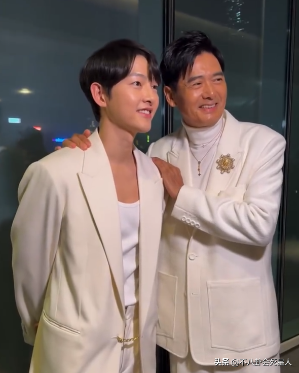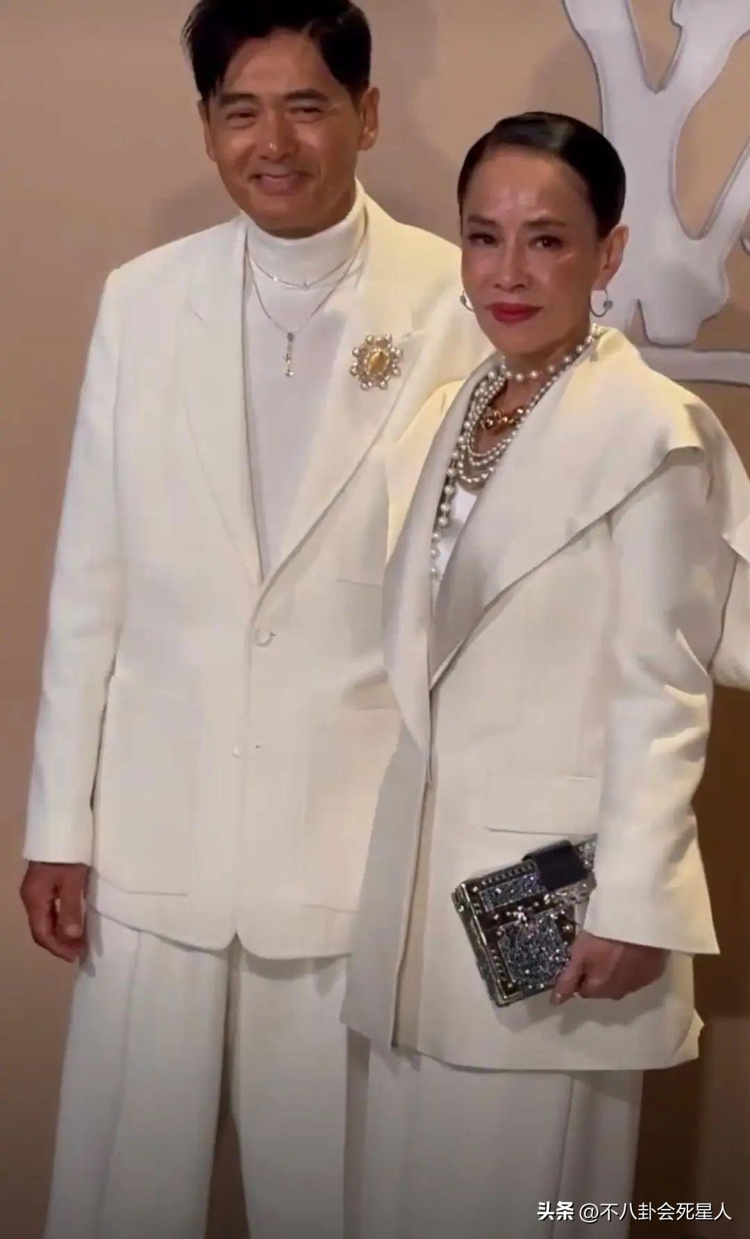 前段時間,周潤發夫妻出席某活動,穿著寬鬆白西裝的周潤發就顯得年輕很多,因為西裝不會暴露他過度消瘦的身材,加上他本身頭髮濃密個子高,又回到了年輕時那個意氣風發的「發哥」了。