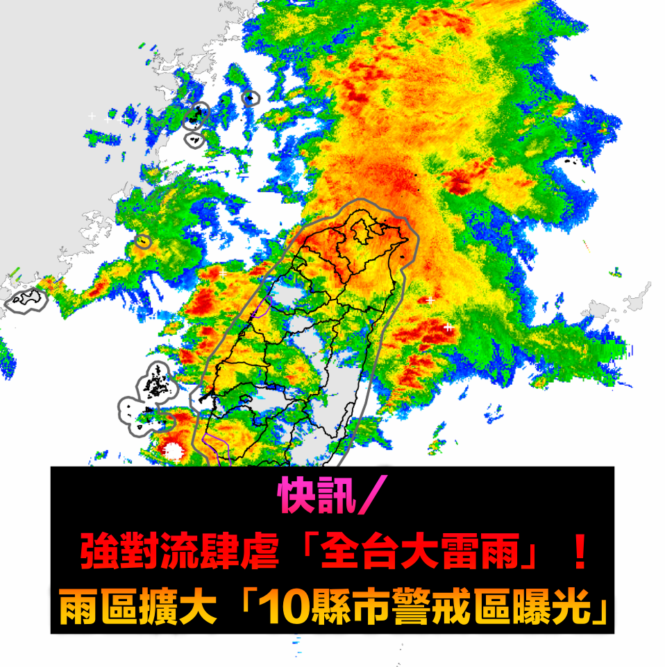 快訊/強對流飆升「全台狂轟大雷雨」!雨區擴大「10縣市全中鏢」 警戒區曝光