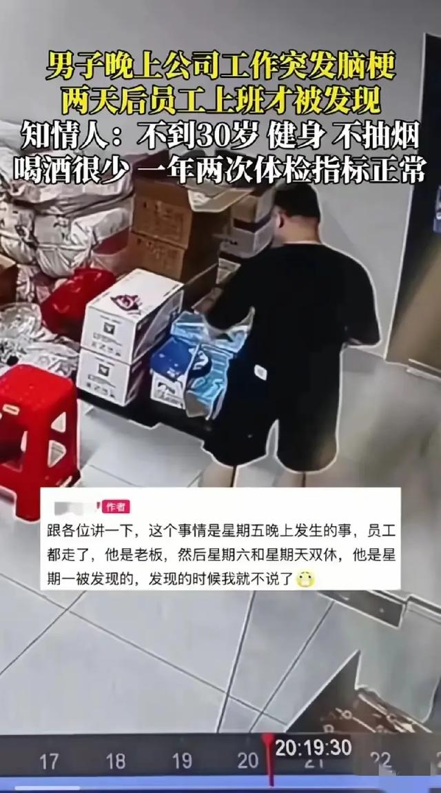最近中國山東曝出一個新聞,一位年輕的小夥子才28歲就突發腦梗,因為發病時人在公司裡,而且還是在星期五晚上,身邊一個人都沒有,當大家周一上班時發現時,人已經就不在了。