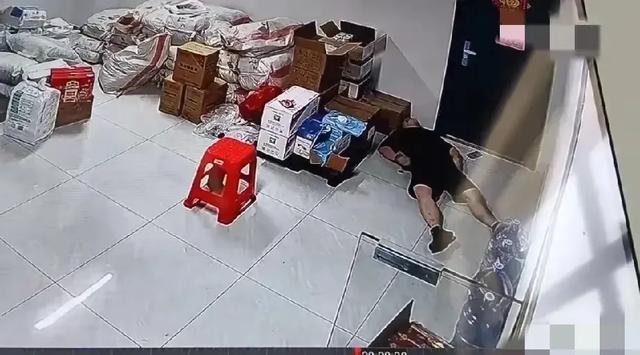 通過監視器畫面可以看到,剛開始時他自己還在搬東西,發病前站在門口愣了一下,然後就突然身體晃動著就摔倒了。
