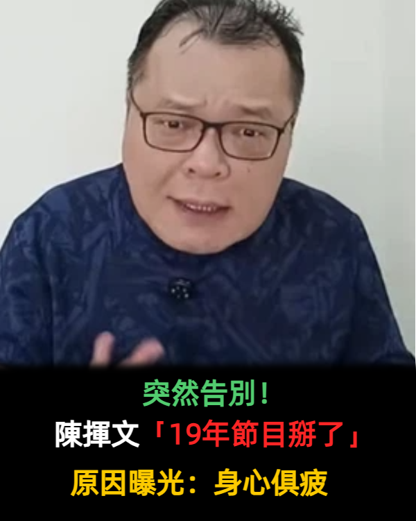 突然告別!陳揮文「19年節目掰了」原因曝光:身心俱疲 Elmo 2025-11-29 檢舉 圖片來源:《自由時報》消息曝光後,網友們紛紛湧入留言區表達不捨之情:「陪伴19年的聲音突然消失好難過」、「感謝這些年的陪伴,YouTube見」、「19年真的不容易,好好休息」、「雖然不捨但尊重決定,期待新平台繼續發光」、「每天下班路上必聽的節目,真的會很想念」。圖片來源:《CTWant》資料來源:《ETtoday》 Advertisements 回首頁 2/2 Advertisements 編輯精選推薦 More + 確診甲狀腺癌!44歲男星「術後近況曝光」哽咽:她為我祈禱 「告白演員愛妻」愛不會停止 李英愛輸了!73歲富商尪「超凍齡像40壯年」站一起超登對 「不時甜蜜咬耳朵」網羨慕 離婚11年!洪榮宏愛女結婚「終破冰前妻」 「2爸爸牽她進場」催淚畫面曝 24歲兒失明!于美人爆「他在飯店掃廁所」維生 不盼紅包只求「別再花我的錢」 22歲愛女病逝!資深男星「走不出喪女痛」留白長髮現身 掛骨灰項鍊「代女做1事」惹淚 慶祝17歲愛女畢業!53歲大咖「兒女皆讀名校」年花千萬 驕傲「她獲三大獎」:又美又自信 台語歌后慟別摯愛!告別式上認「早隱瞞病情」 道歉哭喊:原諒我簽放棄急救 最新/3度中風送醫!資深男星爆離婚「斷50年髮妻」 「砸1億淨身出戶」家族爆紛爭 65歲男星獨居暴斃!大咖女星放下恩怨「送前夫最後一程」 昔遭動手6年嘆「死者為大」 大咖男星妹妹出嫁!全身金飾「曾獲近千萬豪宅」嫁妝豐厚 兄妹長超像「一看媽媽懂了」:基因強大 15歲兒「睡夢中離世」!本土女星「送愛子火化」求做1事 「PO照圓滿了」:媽媽和你永不分開 晚年兒孫滿堂!73歲影壇大哥「拄拐杖現身」腳步蹣跚 兒子「全程攙扶不喊累」網羨:又帥又孝順 旅美多年!資深女星「堅持落葉歸根」回國5天安詳離世 死前「砸600萬做1事」眾人淚目 台灣大咖病逝「享壽83歲」!周遊告別式痛哭「認婚內出軌」:兒子很恨我... 相差18歲!58歲康康自爆「與老婆分房12年」驚呆眾人 提到沈玉琳「坦言罹同1病」:必須警惕... 功德圓滿了!台語歌后「悲曝他離世」享壽95歲 淚喊:去當快樂的神仙吧... 瞞病情積極工作!51歲影后「住院照曝光」眼神充滿光 丈夫悲慟「臨終前吃流食」:仍盼奇蹟降臨 狠斷8年婚!一線小生「被爆淨身出戶」終於離婚 認了「像被雷劈到」才會娶她 趕在40歲前閃婚!八點檔女星「宣布嫁給他」 尪驚人身分曝「媒人是柯叔元」 45歲本土劇男星「驚曝已婚16年」! 首吐婚姻狀況「愛女是名校學霸」 以為只是小感冒!本土女星悲痛證實「他併發肺炎過世」 一度淚灑現場「後悔同意插管」 他真的每天都在...具俊曄「暴瘦坐墓園」天天伴亡妻 粉絲直擊「悲傷身影」淚:最深情男人 最新/賈靜雯深夜慟曝「她已離世」 淚PO合照喊:真的好愛你... 晚年隱居台東!68歲名主持失蹤「車內身亡」 伴侶悲曝「死前做1事」:還掛念著我 再婚2年了!43歲李燕突喊「當媽媽實在太辛苦」 認「已經有愛的結晶」:最完美的幸福❤️