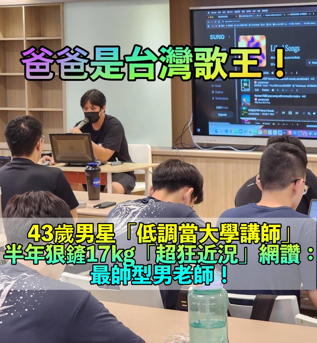 爸爸是台灣歌王!43歲男星「半年狠鏟17公斤」 全家都是歌手「他低調當大學講師」笑喊:我唱最難聽