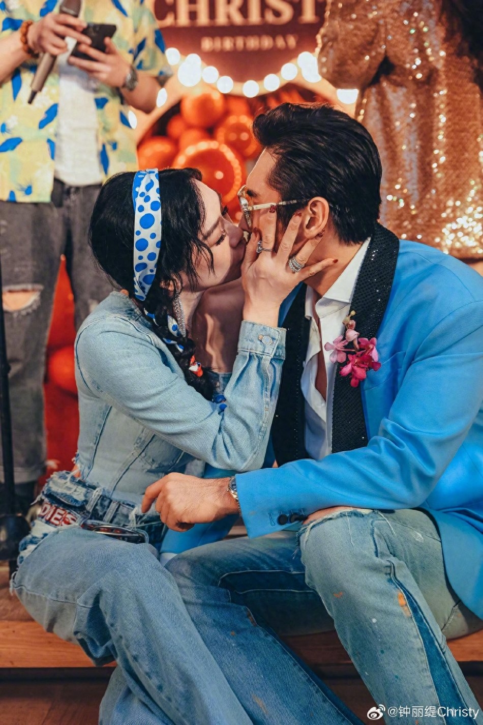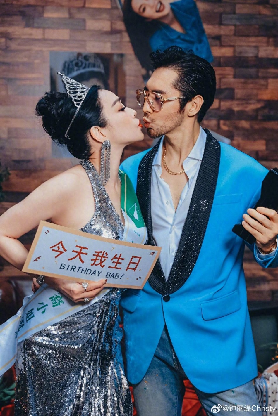 而一旁鍾麗緹的老公則穿著一身藍色西裝,兩人大方合照放閃,兩人不僅互相嘟嘴,鍾麗緹還摟住老公熱情親吻,粉紅泡泡溢出整個螢幕,恩愛模樣羨煞旁人!鍾麗緹也配文感謝爸媽、公婆、孩子與老公,寫下:「我很開心,也希望你們可以快樂無憂、愛意常伴、幸福甜蜜!」