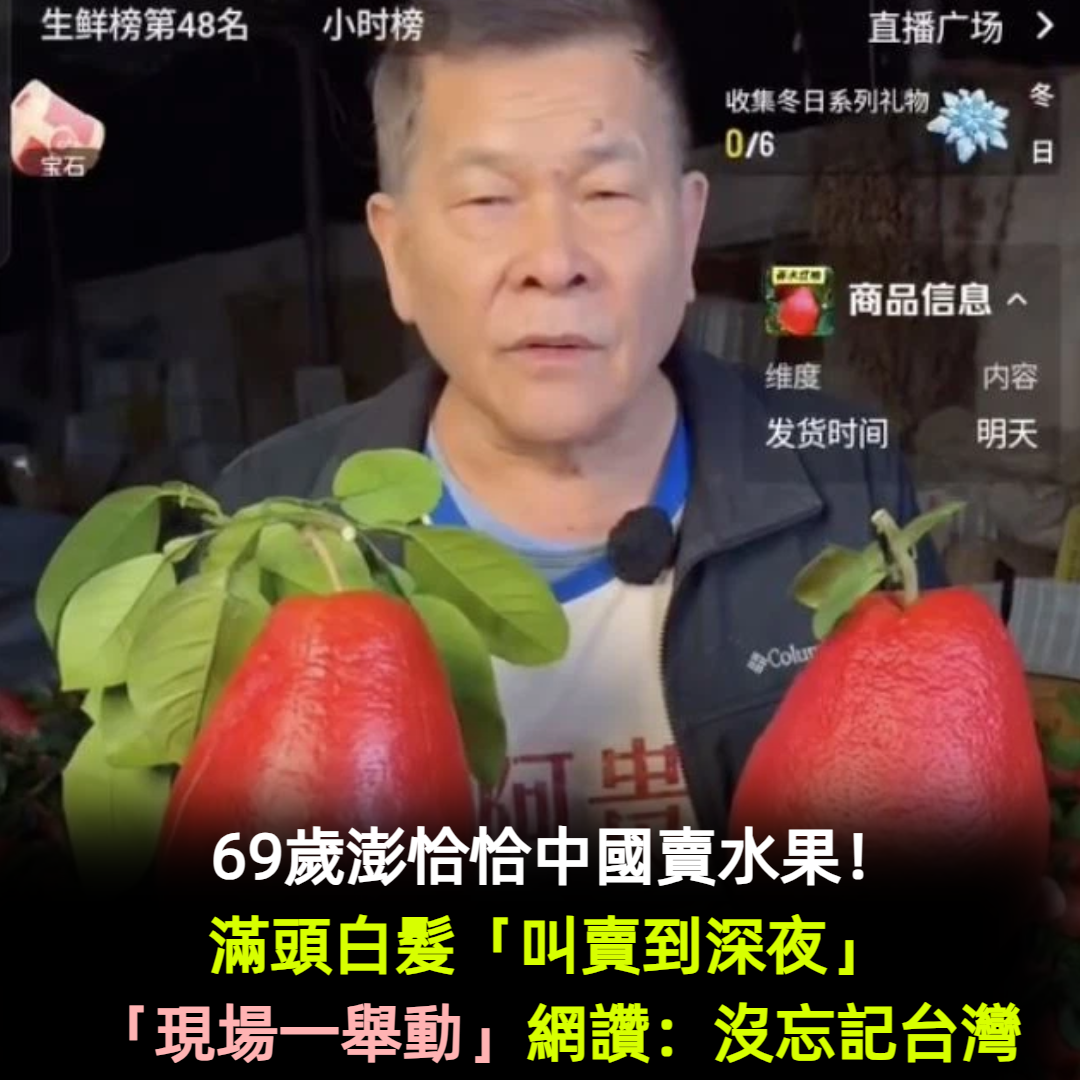 69歲澎恰恰中國賣水果!滿頭白髮「叫賣到深夜」 「現場一舉動」網讚:沒忘記台灣