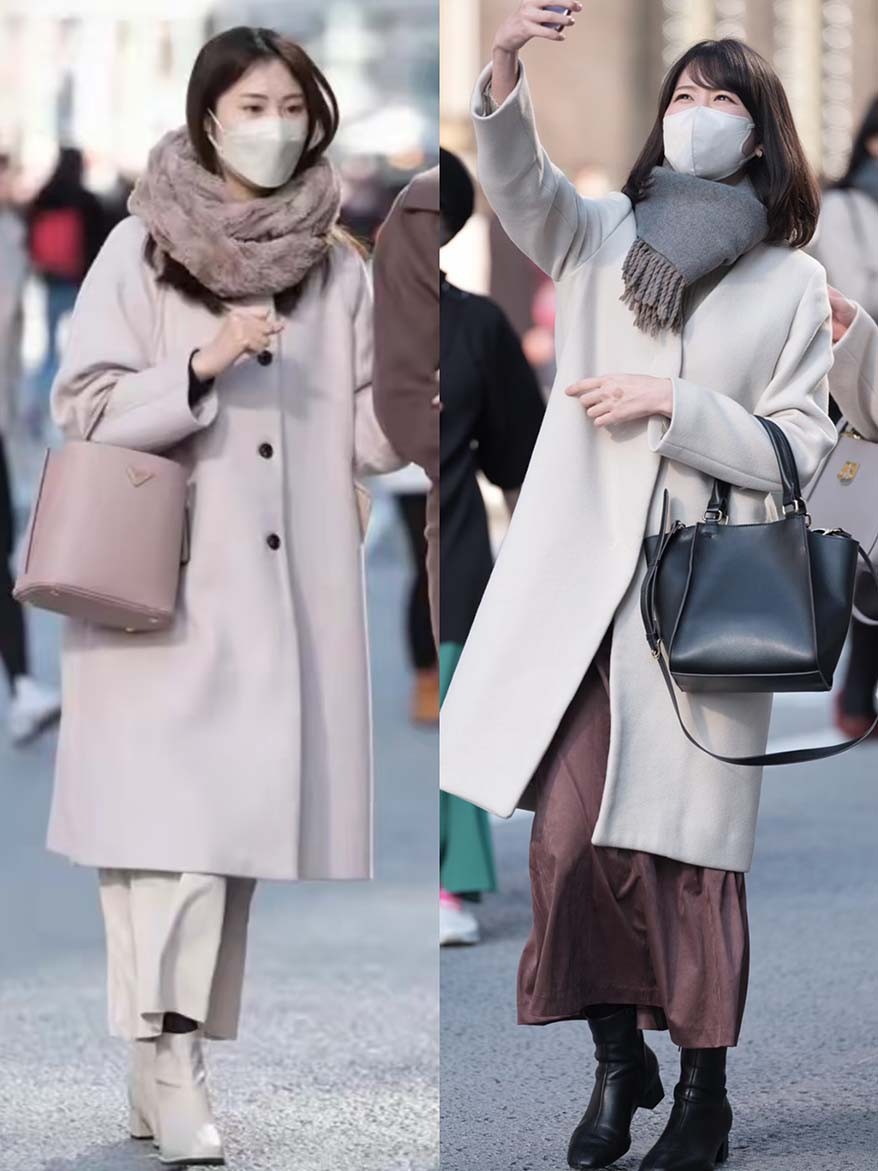 大衣的時尚表現力也很突出。為什麼日本、上海街頭的時尚程度那麼高,但凡你留心一下,就知道他們那裡穿大衣出門的女人特別多,羽絨服和棉服的出鏡率較低。