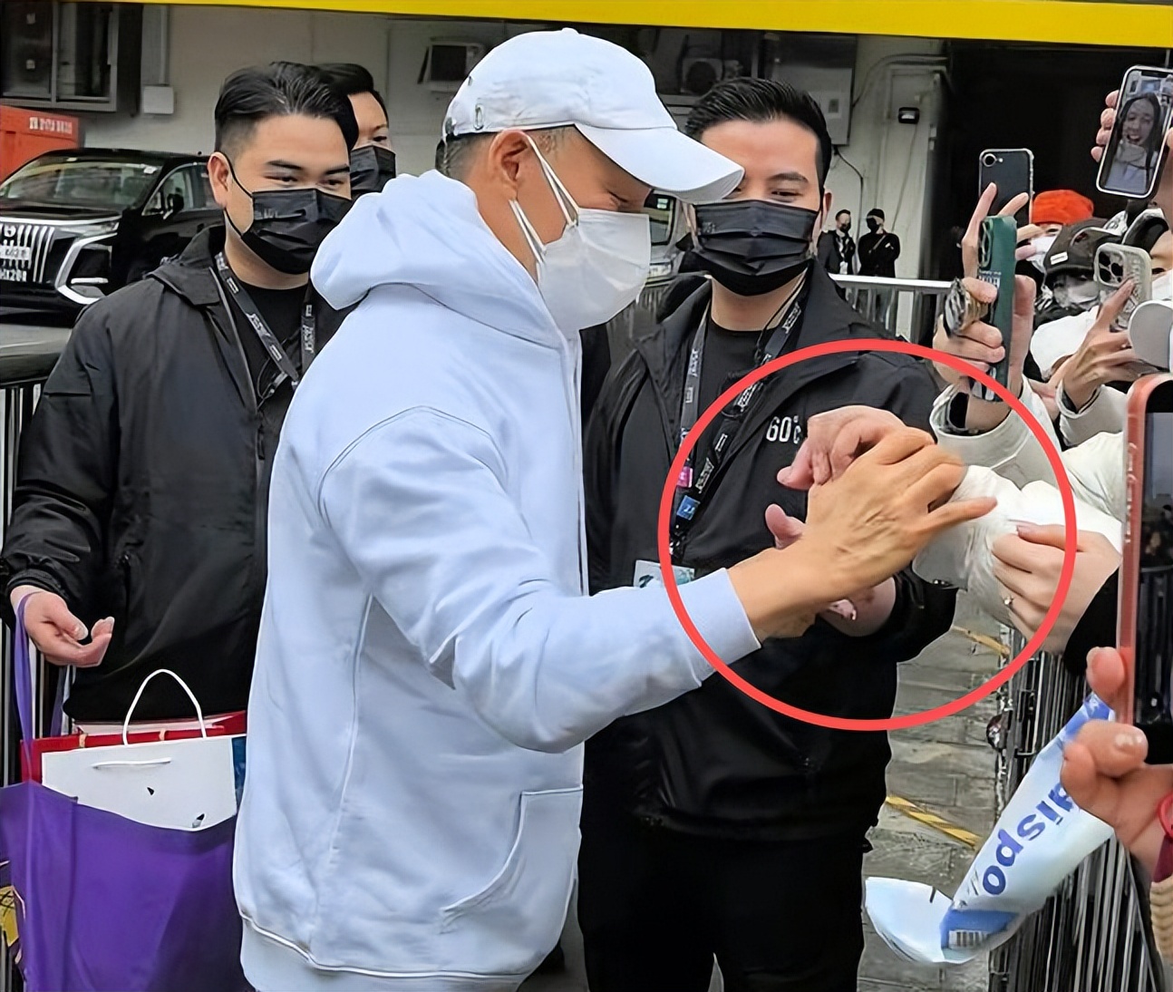 從網民分享的多張照片中,可以清晰的看到,張學友在與粉絲打招呼或簽名時,其手掌中心及手指部分,都有著很明顯的黃色,特別是與周圍人的膚色相比,顯得更黃。