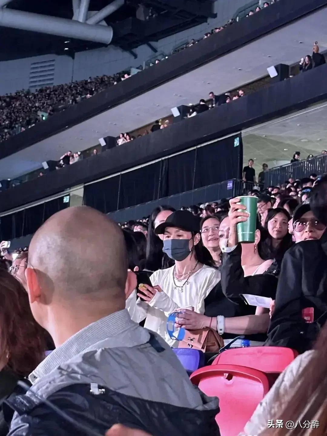 去年酷玩演唱會上,就有人拍到她戴著鴨舌帽和鍾鎮濤啃熱狗,瘦削背影比女明星時期更鬆弛。