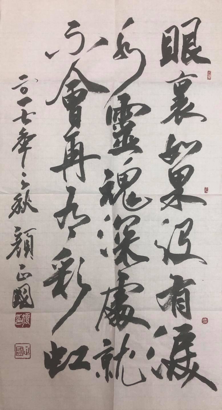 《CTWANT》指出,疫情期間,演藝工作機會銳減,顏正國在第2段婚姻生了3個孩子,為撐起一家五口的生計,顏正國重拾在獄中習得的書法技藝。每天清晨,他會先放《心經》來聽,但常被妻子催促趕快動筆寫字,因為家中經濟壓力沉重,妻子在耳邊叮嚀:「錢都收了,也快花完了」成為他創作的最大動力。