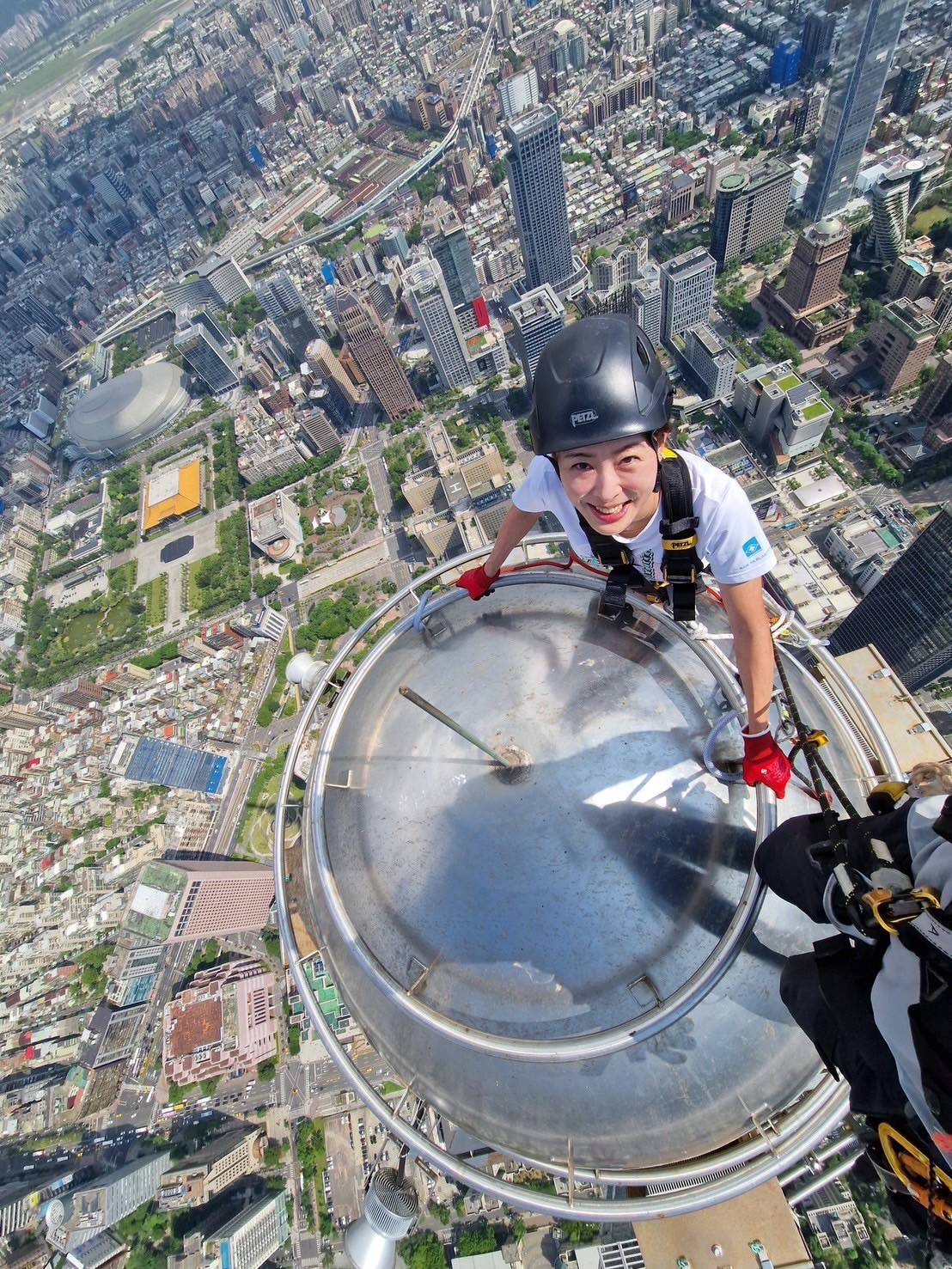 台北101即將在1月24日迎來世界級攀岩好手霍諾德的徒手攀登挑戰,這項極限運動吸引全球目光。身為台北101董事長的賈永婕為了替活動暖身造勢,竟親自挑戰登上頂樓高空,還勇敢站上僅能容納雙腳的鋼圈,從超高視角俯瞰台北市景,這組震撼照片曝光後立刻在網路上掀起熱議。