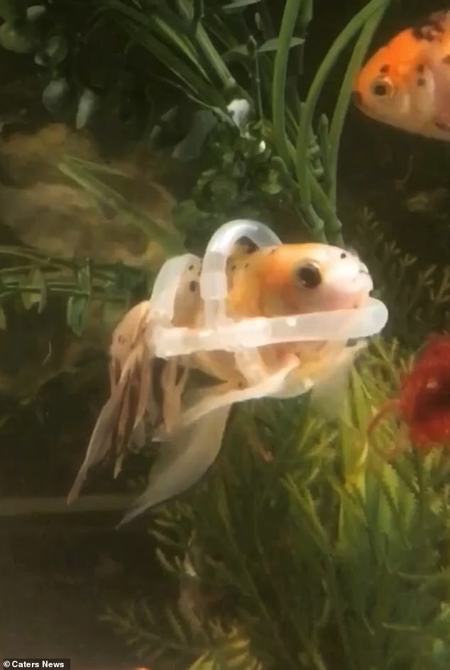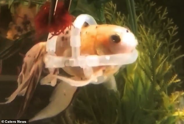 史黛西便利用軟管替魚兒做出了「輔助救生衣」(又稱「魚輪椅」),魚兒穿戴上之後便能固定住魚身,使牠能夠像正常的魚一樣穩定地在水中游著,史黛西還會定期替魚兒更換「不同size」的救生衣,這樣魚兒就可以不僅止於一直待在同一水位,而是能夠感受不同水位深度的生活~