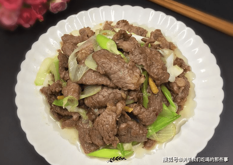 起鍋燒油,放入蒜末、薑絲以及三分之一的大蔥,大火爆炒出香味,倒入腌好的牛肉片,大火翻炒至變色,加入適量食鹽、雞精調味,再把剩下的大蔥倒入,翻炒至斷生後即可出鍋。