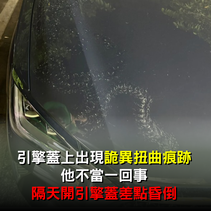 幸好沒洗車!引擎蓋上出現「詭異扭曲痕跡」 網友嚇翻「打開引擎蓋一看」快要昏倒