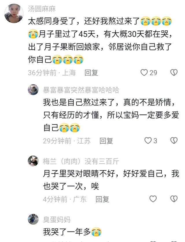 在該事件的評論區中,不少人表示,自己在生完孩子後,有明顯的產後抑鬱症狀。