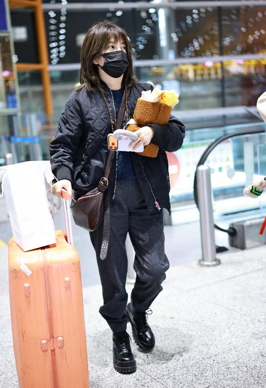 1月3日,北京首都機場的冷風裡,一場無聲的視覺對撞正在上演。趙薇把自己裹進了一層黑色的屏障裡:黑色薄棉衣、黑牛仔褲、黑馬丁靴,外加壓低的帽子和黑口罩。