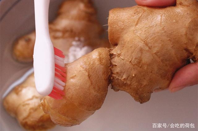 曬伏姜要用老薑,不要用仔姜,因為仔姜所含水分太多,曬乾後營養流失得會更多。首先我們要把生薑沖洗一下,再把生薑掰成小塊,因為生薑的縫隙中有殘留的泥沙,這樣方便清洗掉髒東西。用澱粉和食鹽刷洗生薑,可以把生薑洗得非常乾淨。