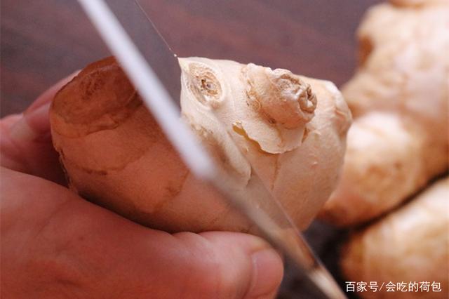 生薑控干水分後,把刷洗不到的地方,用刀削掉就行。其他的部分不要削皮,帶姜皮曬出的伏姜更為柔和,姜皮可以平衡姜肉的作用,夏季吃薑要保留姜皮,這樣就不會上火了。