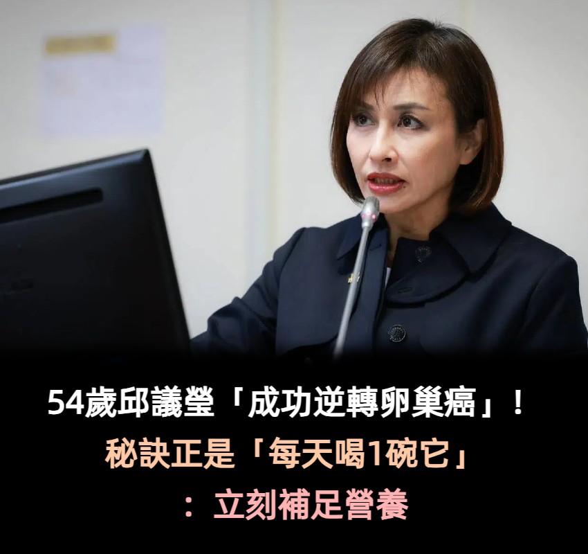 54歲邱議瑩「成功逆轉卵巢癌」!秘訣正是「每天喝1碗它」:營養多多 Alice 2026-03-25 檢舉 在戰勝癌症後,邱議瑩決定將抗癌歷程寫成書籍,鼓勵更多病友保持正向態度,同時也強調現代醫療進步快速,定期健檢與早期發現相當關鍵,也呼籲大家別過度操勞身體、避免熬夜飲酒,偶爾出國旅遊放鬆心情。 (圖片來源:臉書)來源:tvbs Advertisements 回首頁 2/2 Advertisements 編輯精選推薦 More + 每天自己蒸饅頭吃!51歲家庭主婦「竟查出胃癌」 醫生曝「這2物看似實惠」:貪便宜的後果 滿街都在穿!醫點名「這款鞋」少穿為妙:恐讓脊椎變形 教你「1招看腿型」秒挑到好鞋 2026台北市長「鄭麗君對決蔣萬安」 最新投票結果驚人 老公為她不再選立委!林昶佐妻子「驚爆罹罕見疾病」 她現身「親曝健康狀況」:沒藥可醫... 44歲許維恩罹乳癌!醫示警「3日常用品」易致癌:別碰才能保命 罹大腸癌淡出影壇!88歲老戲骨生日「被發現入住養老院」 白髮削瘦「只能推輪椅代步」健康狀況曝光 47歲大姐聲稱單身多年「沒有過親密行為」卻確診HPV崩潰! 醫搖頭「中年女性都該注意」:觀念錯誤悔一生 13歲體操冠軍「驚傳跳樓輕生」!日記本「寫下絕望原因」:不想活了 86歲蕭萬長「逆轉肺癌」!秘訣竟是「靠1碗養生湯」每周喝4次:快速清毒素 節目直播中出事!64歲郭正亮「突眼歪嘴斜」緊急送醫 最新病況曝光 一審遭判17年!柯文哲「凝重轉微笑」承諾不逃亡:只求3件事 昔為父還9000萬債!方季惟罹癌重生「歡慶59歲生日」 不婚不生「發現2顆腫瘤」笑喊:看淡一切 就是不投降!伊朗還有「1王牌」不是石油、核武 恐拉全球下水 年輕女神級舊照流出!鄭麗君「41歲才遇上對的人」 老公背景驚人「夫妻身家飆12億」 製作海報嗆「李登輝是惡魔」!賈永婕道歉了 傳胞弟「脫黨參選」恐釀綠營全滅!她緊急出面了 低頭求和?川普曝伊朗「送上大禮」:價值非常多錢 兒子眼睛超小!她曝光「爸爸照片」全場大笑:基因不會騙人 女性衰老特徵「1臭、2大、3小」!如果都沒有「恭喜妳還很年輕」 曾競選總統!政壇大人物「驚傳身亡」 體內有癌「腿部先知」!出現「4個異樣」暗示癌症來了 早期癥狀:不要忽視 睡不好容易老!多吃「4種助眠食物」:根本天然安眠藥 快訊/柯文哲一審17年!京華城案僅「這2人獲判無罪」 喝的瘦瘦針!她曝「超商1飲品」喝3口整天不餓 專家揭真相:「是真的」 歌后母親105歲!她曝光「長壽3關鍵」養生之道曝光:身體還很硬朗