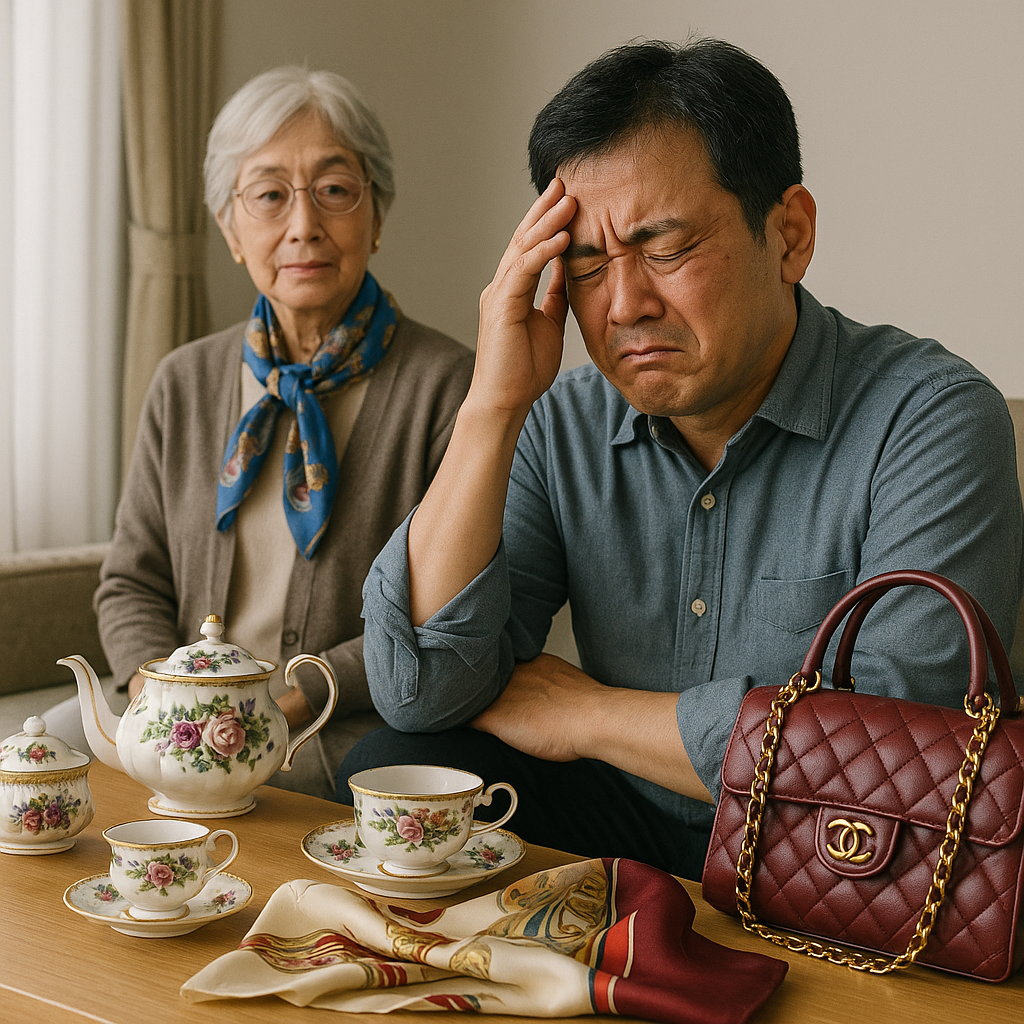 昔日節儉的母親身上穿著名牌圍裙,使用的是皇家御用瓷杯,搭配法國精品馬卡龍,桌上擺著法國名牌水晶花瓶,牆上還掛著愛馬仕絲巾。更令人震驚的是,原本高達3000萬日圓的積蓄,如今只剩下500萬日圓(約約台幣100萬)。